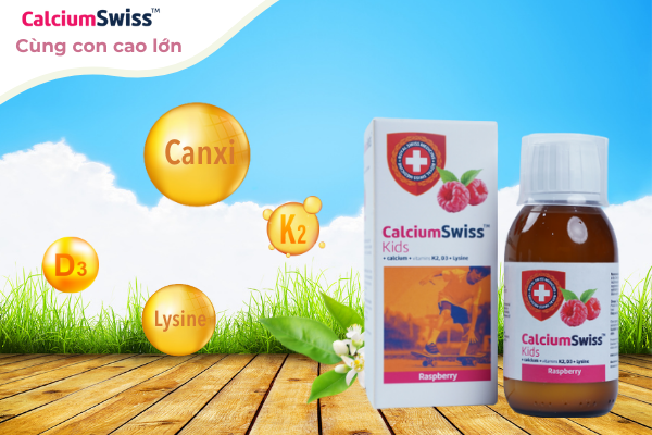 Mang thương hiệu từ đất nước Thụy Sỹ xinh đẹp, Siro tăng chiều cao CalciumSwiss bổ sung đủ bộ dưỡng chất tăng chiều cao: Canxi, Vitamin D3, K2, Lysine.