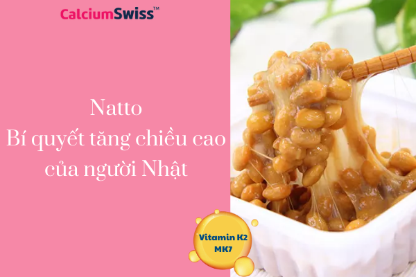 Natto là món ăn chứa rất nhiều Vitamin K2-MK7. Vitamin K2-MK7 là chất dẫn canxi đi tới xương để phát triển chiều cao. Do đó một khi vắng mặt của 𝗞𝟮-𝗠𝗞𝟳, canxi sẽ đi vào mọi nơi bất kỳ trong cơ thể như gắn vào lòng mạch gây vôi hóa mạch máu, tới thận gây sỏi thận,...,..... Sự hiện diện của hoạt chất là là thực sự cần thiết để đạt hiệu quả sử dụng canxi và giúp bé tăng chiều cao tối
