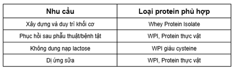 Việc lựa chọn protein không nên dựa vào giá thành hoặc quảng cáo, mà cần phù hợp với: