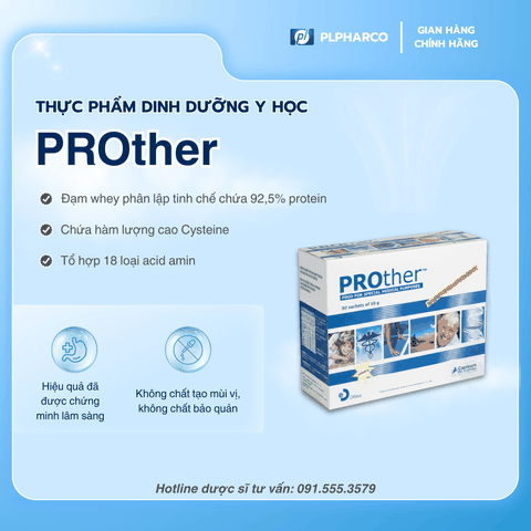 Với hàm lượng protein cao, giàu cysteine, công thức không hương liệu, không chất bảo quản và nền tảng nghiên cứu lâm sàng rõ ràng, PROther là một lựa chọn đáng cân nhắc khi cần bổ sung protein một cách nhẹ nhàng, an toàn và phù hợp với thể trạng người bệnh đang phục hồi sau phẫu thuật.