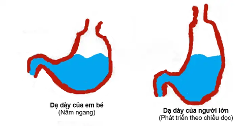 Dạ dày của trẻ sơ sinh gần giống với trạng thái "nằm ngang", trong khi dạ dày của người lớn thẳng đứng. Dạ dày của trẻ sơ sinh cũng nông hơn nên thức ăn trong dạ dày sẽ dễ trào ngược lên trên.