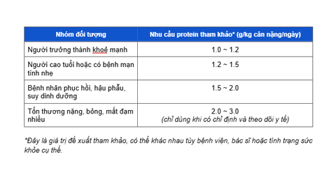 Tuy nhiên, nhu cầu protein thay đổi tùy theo tình trạng sức khỏe cụ thể như sau: